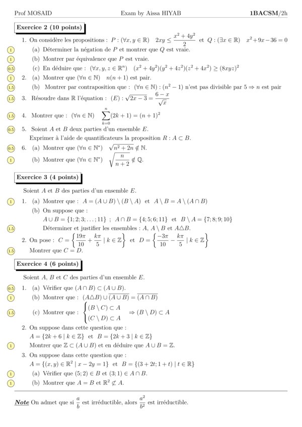 - فرض محروس رقم 1 الدورة الأولى Exam