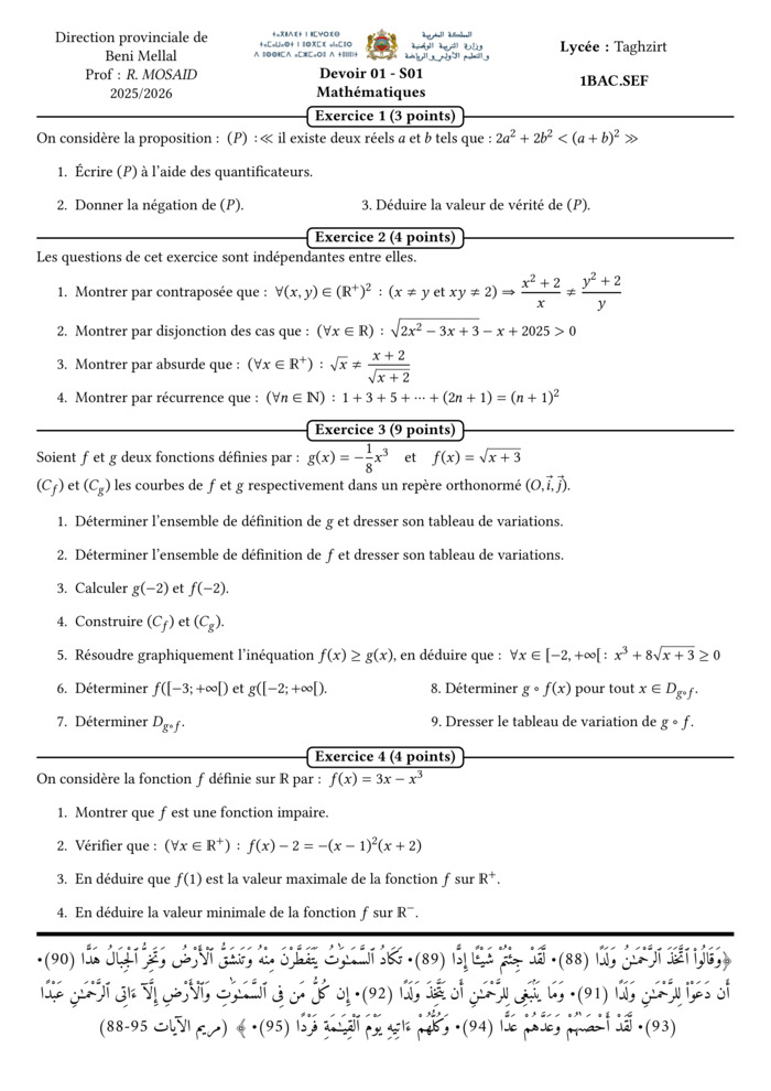 - Test Diagnostique 1BacSE (2025-2026) Exam