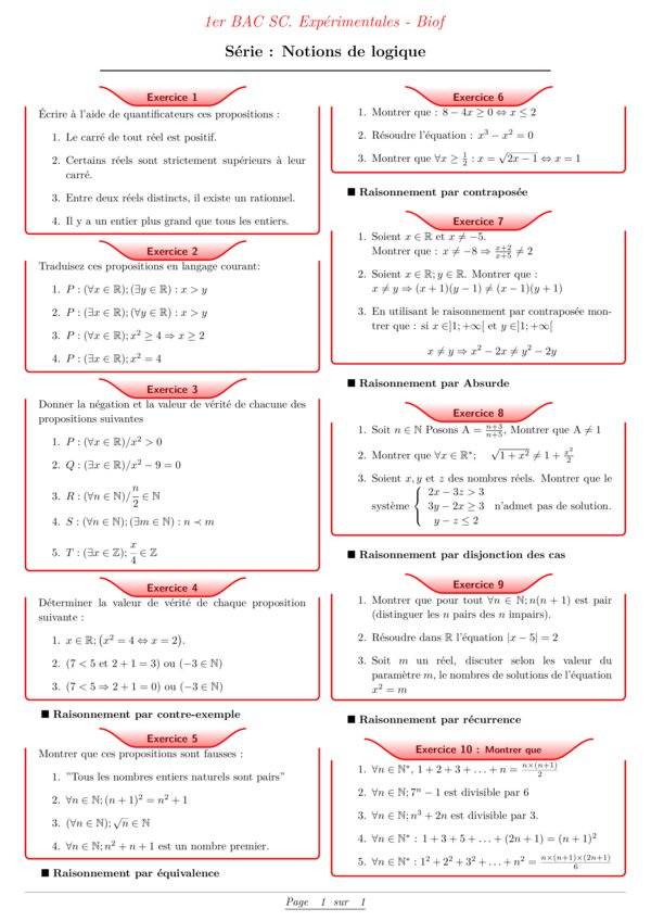 {\Large\textit{\textcolor{red}{1er BAC SC. Expérimentales - Biof}}} \vspace*{0.5cm} \\