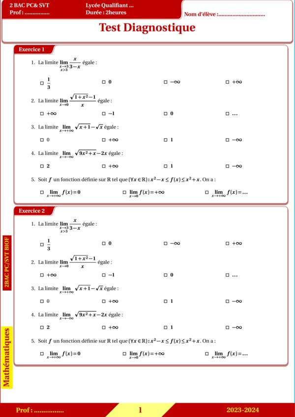 Test diagnostique 2BAC PC/SVT