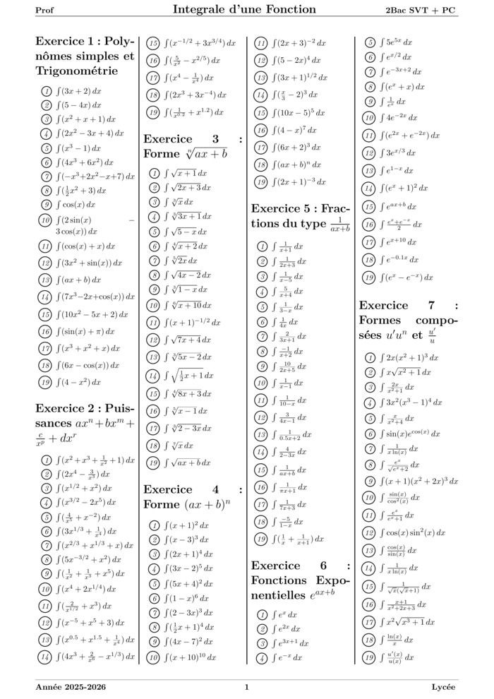\textit{Calculer les intégrales suivantes en posant judicieusement $u(x)$ et $v'(x)$.}