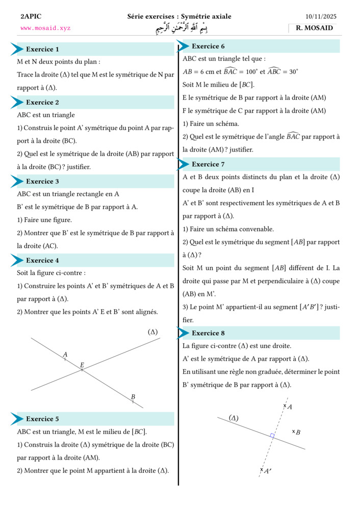 \def\examtitle{Série exercises : Symétrie axiale}