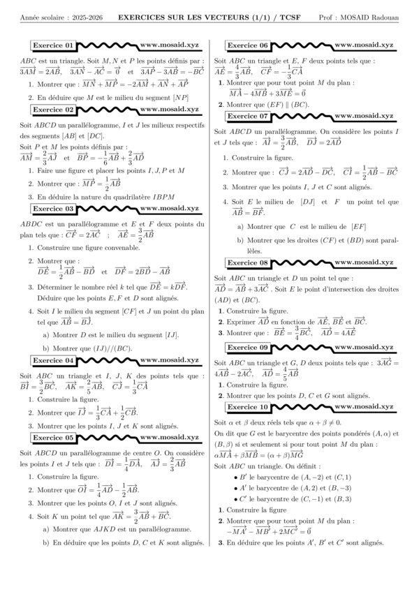 \fancyhead[C]{\textbf{EXERCICES SUR LES VECTEURS (\thepage/\pageref{LastPage}) / TCSF}}